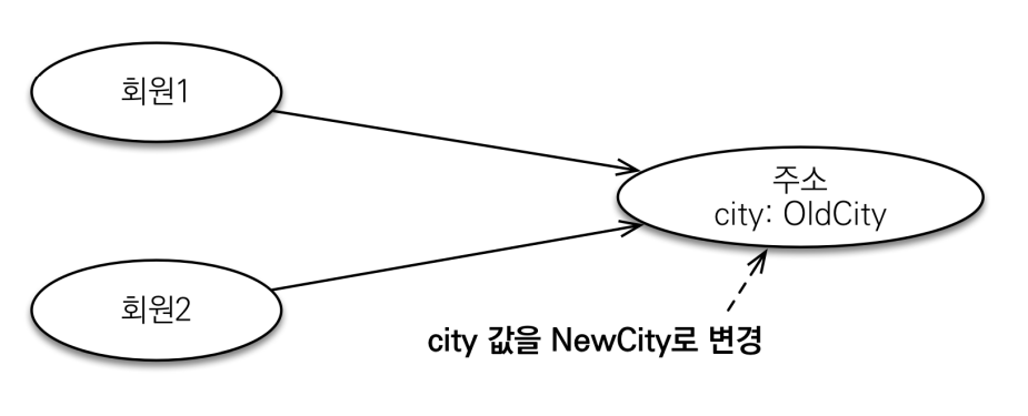 따라서 임베디드 타입 같은 값 타입을 여러 엔티티에서 공유하면 위험하다.