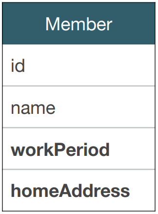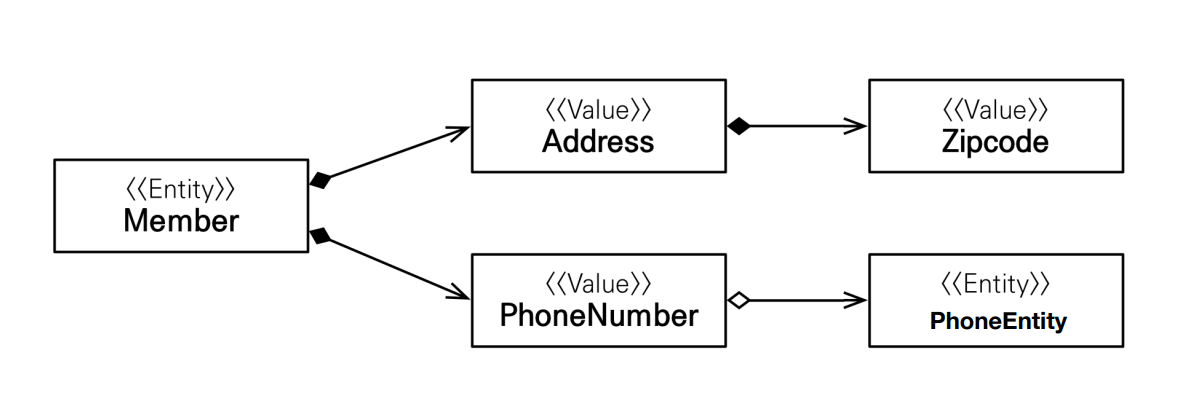 - Member 엔티티는 Address와 PhoneNumber라는 임베디드 타입을 갖고 있다.