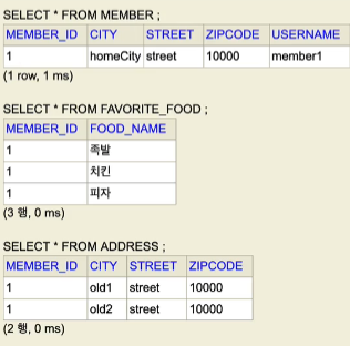 //member1의 주소를 가져와 city를 변경했다.