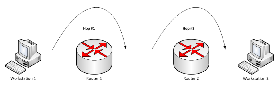 네트워크에서 출발지와 목적지 사이에 위치한 장치를 의미하며 홉 카운트는 데이터가 출발지와 목적지 사이에서 통과해야 하는 홉의 개수를 의미한다.