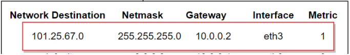 - Gateway : 이 장치와 연결되어 있는 홉, 패킷이 전달되는 다음 IP 주소(외부 네트워크와 연결된 장치) 만약 목적지가 연결 네트워크라면 connected 라고 표기되며 다른 네트워크라면 해당 네트워크의 게이트웨이를 가리킨다. ex) PC1과 10.0.0.2가 연결되어 있고, 또 10.0.0.2는 외부 네트워크와도 연결되어 있다. 이 외부 네트워크를 거쳐 PC3으로 간다.