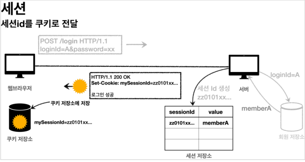 - 세션은 기본적으로 메모리에 생성된다. 메모리의 크기는 무한하지 않기 때문에 꼭 필요한 경우에만 생성해서 사용해야 한다.