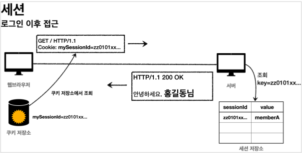 - 세션은 기본적으로 메모리에 생성된다. 메모리의 크기는 무한하지 않기 때문에 꼭 필요한 경우에만 생성해서 사용해야 한다.