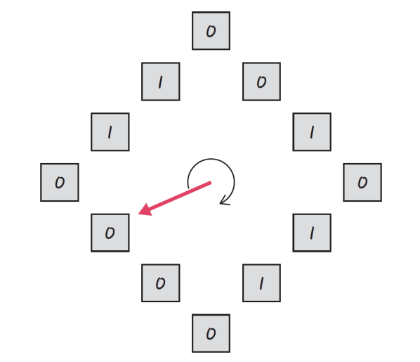만약 한 바퀴를 도는 동안 사용되지 않으면 0이 된다. 시계 방향으로 돌면서 0을 찾고 0을 찾은 순간 해당 페이지를 교체하고 해당 부분을 1로 바꾸어주는 알고리즘이다.