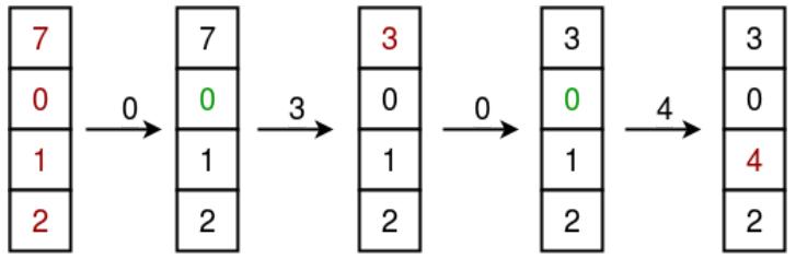 - 7 0 1 2 를 담고 그 다음 0이 들어왔을 때는 스와핑이 일어나지 않는다.
