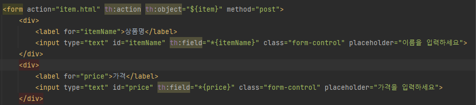 기존의 코드에는 th:text를 사용하지 않고 그냥 “상품 등록 폼”을 사용했다.