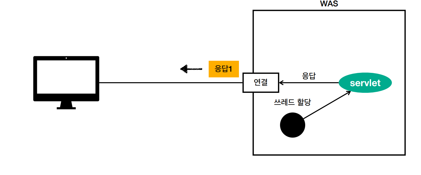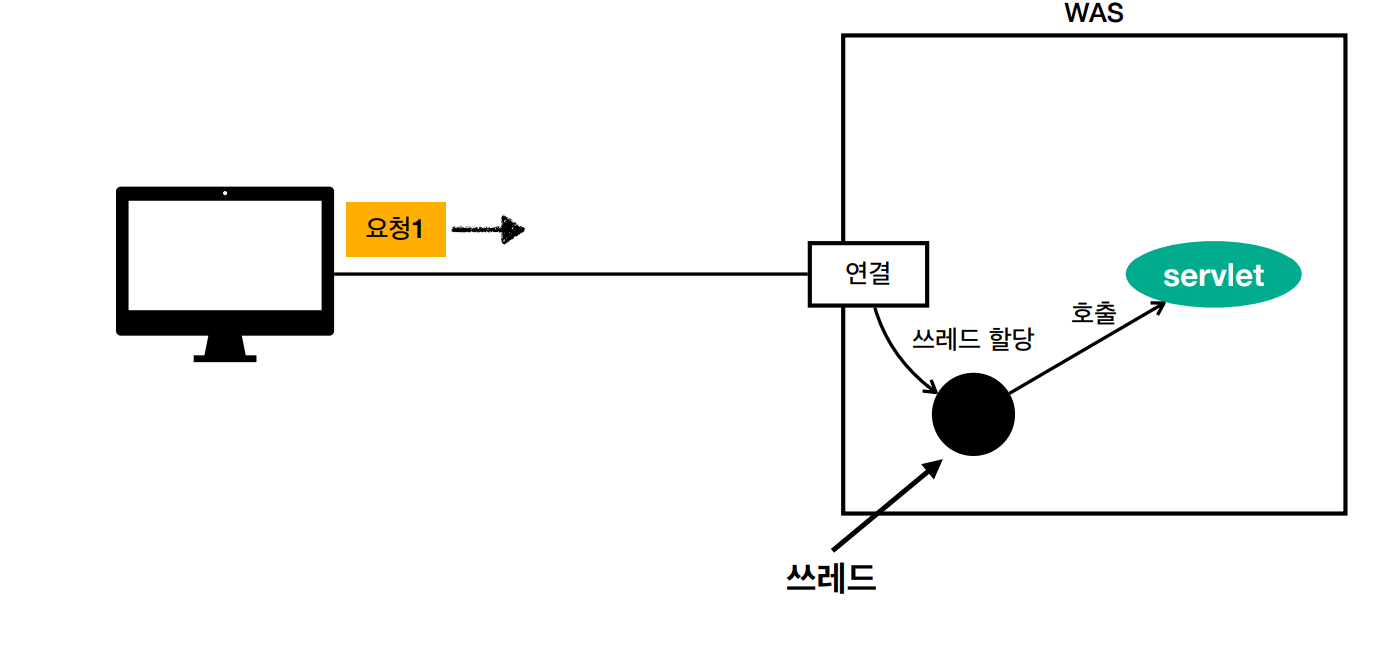 - 멀티 쓰레드에 대한 부분은 WAS가 처리