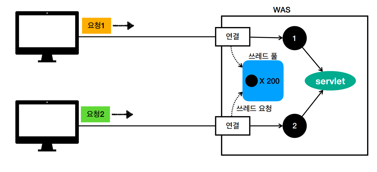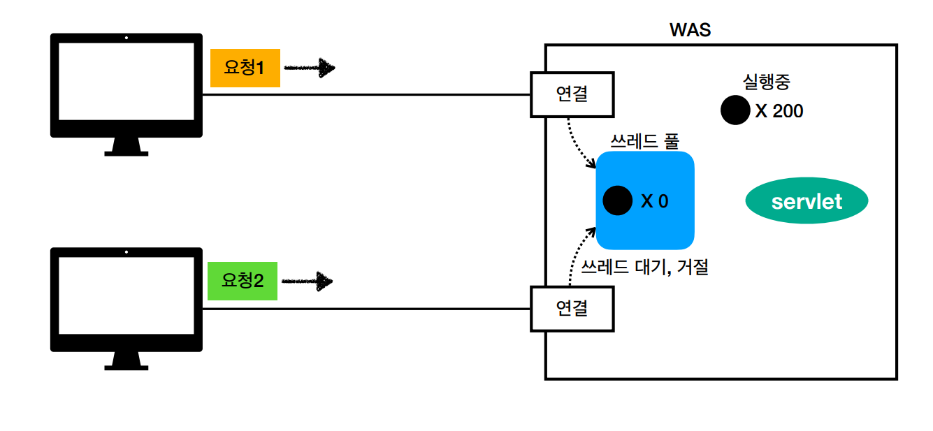 각 요청마다 쓰레드를 생성하는 것에 대한 문제를 해결하기 위해 WAS는 쓰레드 풀을 사용한다.