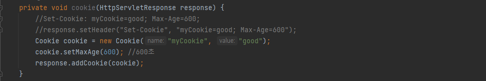 주석처럼 setHeader로 할 수도 있지만 쿠키 객체를 이용한 아래가 더 깔끔하다.