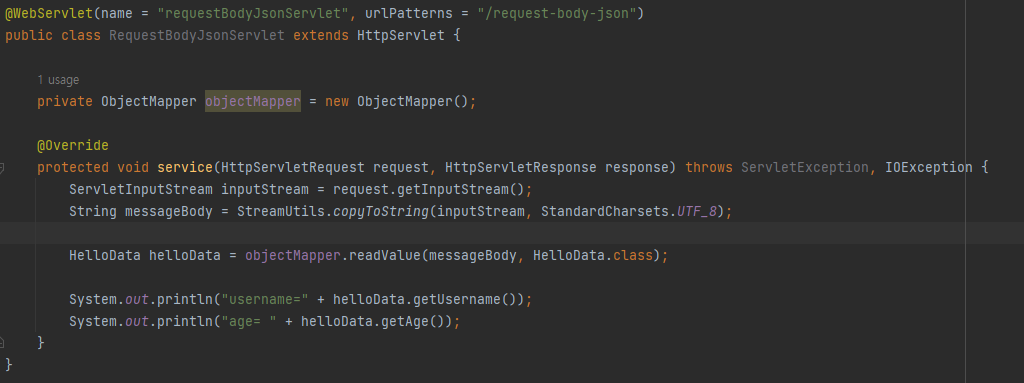 위와 같이 ObjectMapper를 사용해 HelloData 객체를 통하여 각각의 Value를 가져올 수 있다.