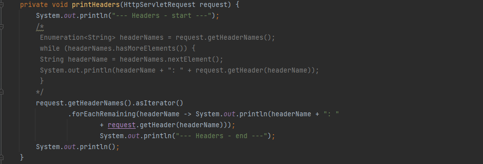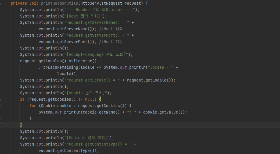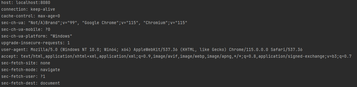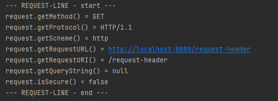 service 함수에서 위 함수를 호출해 실행하고 localhost:8080/request-header로 가면 아래와 같은 결과를 얻을 수 있다.