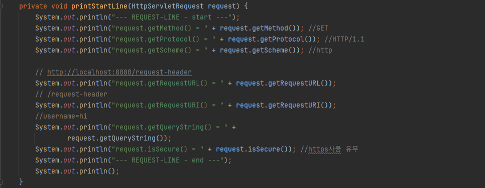 HttpServletRequest 사용 (start-line, header 정보 조회)