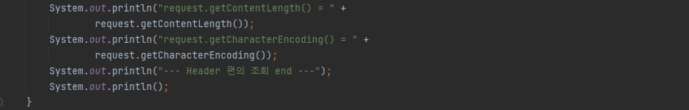 request 객체를 이용해 가져올 수 있는 헤더 정보를 알 수 있다. ?username=kim 을 추가한다면 getQueryString()은 username=kim이 나올 것이다.
