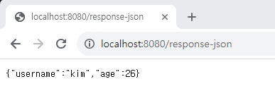 위의 코드를 실행하면 JSON 형태로 브라우저에 보여지게 된다.