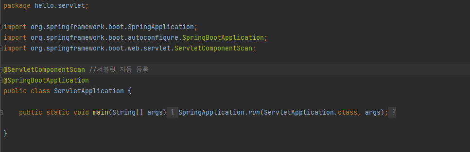 스프링부트는 서블릿을 직접 등록해 사용할 수 있도록 @ServletComponentScan 을 지원한다.