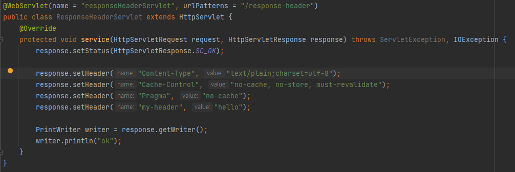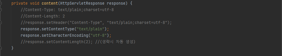 setStatus를 이용해 HTTP 응답 코드를 지정하며 setHeader를 통해 응답 헤더 정보들을 설정할 수 있다.