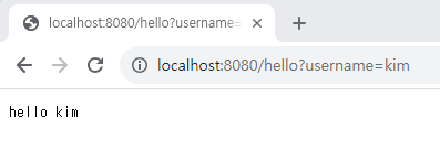 이렇게 작성하고 URL에 localhost:8080/hello?username=kim 이런식으로 하면 파라미터를 받을 수 있다. (String username = kim)