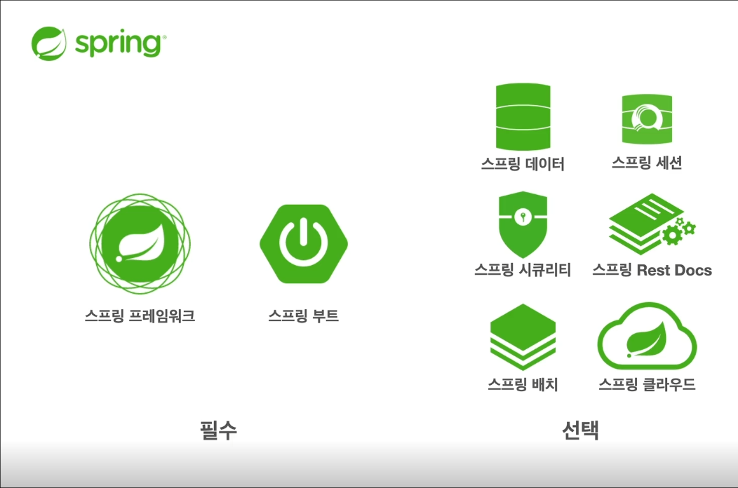 이 중 핵심은 스프링 프레임워크이고 스프링 프레임워크를 편하게 사용할 수 있도록 한 것이 스프링 부트.