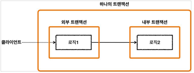 - 위의 가정에서 외부 트랜잭션과 내부 트랜잭션을 묶은 하나의 트랜잭션