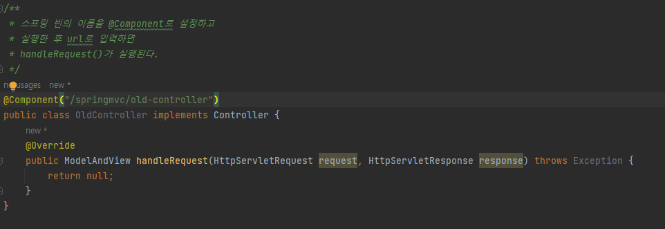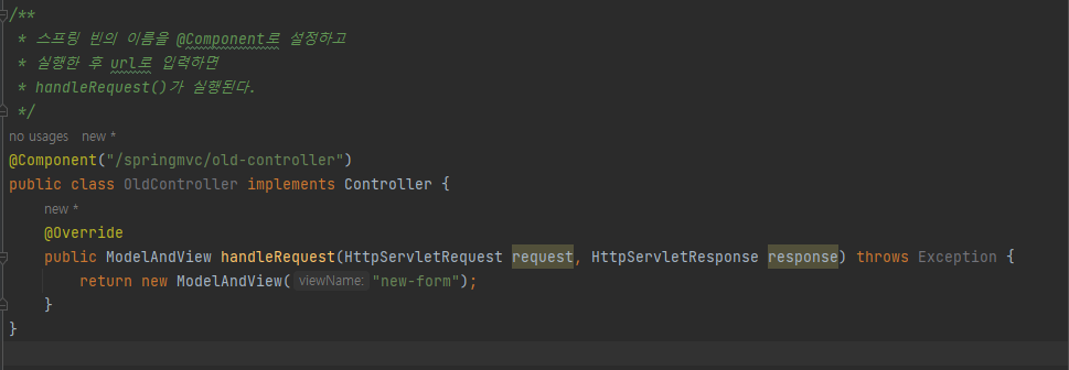 - 위의 경우 BeanNameUrlHandlerMapping이 실행되고 핸들러인 OldController를 반환한다.