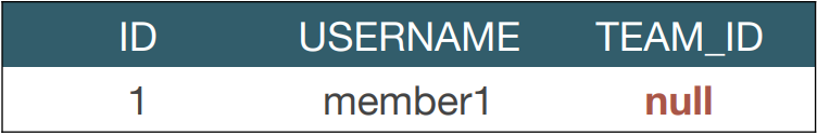 객체에 테이블의 외래키 값인 teamId가 객체의 속성에 추가된다. 참조 대신 외래키를 그대로 사용하게 되는 것이다.