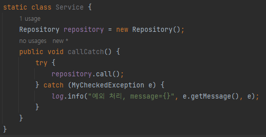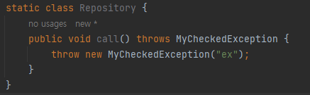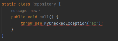 임의의 리포지토리를 만들고 거기서 call() 메서드를 호출하면 MyCheckedException이 발생하도록 했다.