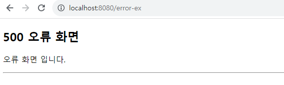 컨트롤러를 통해 만들어놓은 “500.html”로 뷰가 보여지게 된다.
