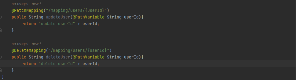 변수명이 같다면 @PathVariable String userId 로 생략해 사용 가능하다.