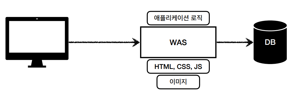 WAS가 애플리케이션 로직을 담당하고 클라이언트가 요청하는 것들을 WAS가 보여주고, 필요하다면 DB에서 데이터를 가져와 동적 HTML을 보여줄 수 있다.