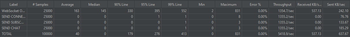 STOMP를 도입했을 때 WebSocket을 활용하여 직접 구현한 방식보다 성능이 좋지 않았다.