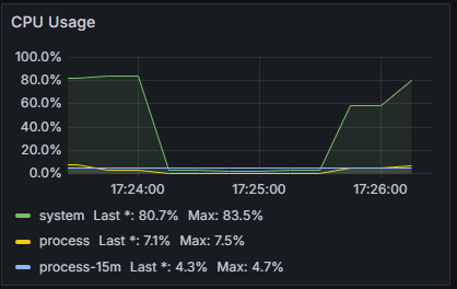 연결은 최대 받아낼 수 있는 것은 현재로서는 3000 users가 최대인 것 같다. 나머지도 어떻게든 돌아가게는 할 수 있지만 제대로 된 동작이 나오지 않는다.