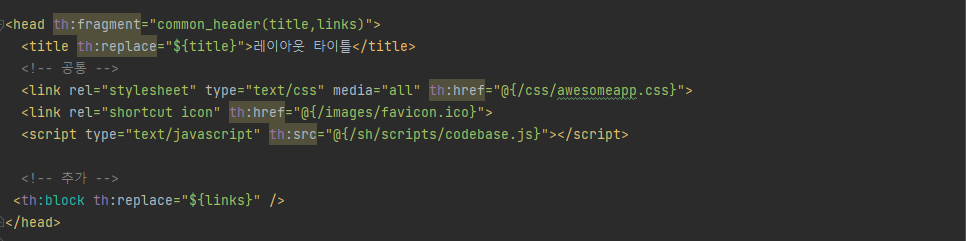 - th:block 이 부분에 link 태그들이 추가되게 되는 것이다.
