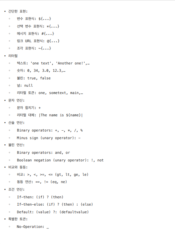 타임리프는 기본적으로 HTML 태그의 속성에 기능을 정의해 동작한다. HTML의 콘텐츠(content)에 데이터를 출력할 때는 ‘th:text’를 사용한다.