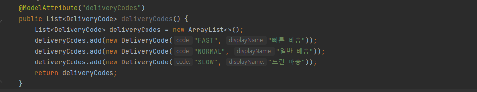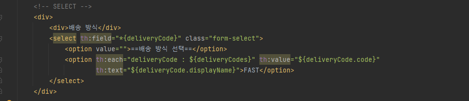 option을 반복문으로 model의 deliveryCodes 값들을 가져온다.