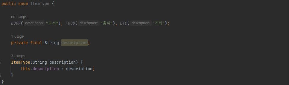 value는 넘길 값인 BOOK, FOOD, ETC 값이다.