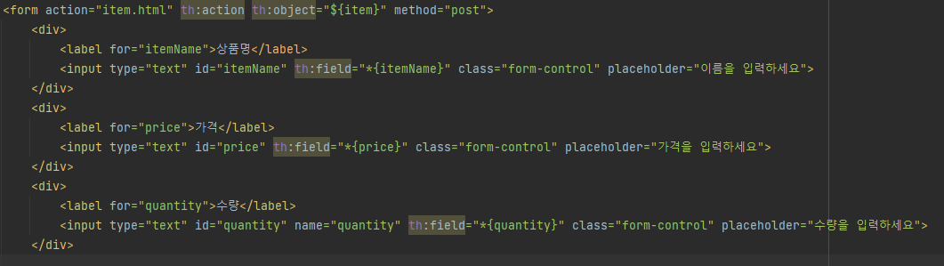 - th:field : id, name, value 속성을 모두 자동으로 만들어준다.