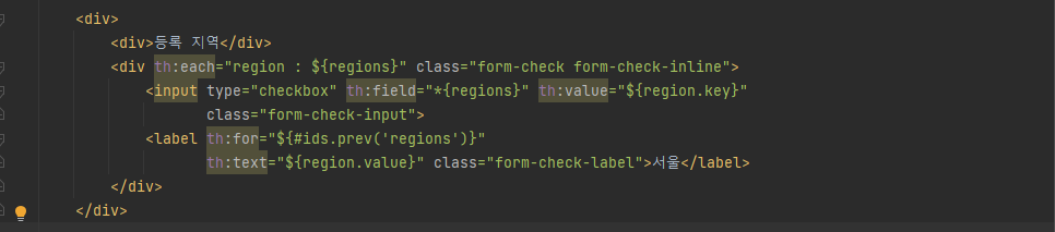 th:each로 region을 돌려 input을 3개를 만든다.