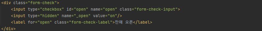 input의 name이 open 이기 때문에 @ModelAttribute를 통해 값이 Item의 open에 들어가게 된다.