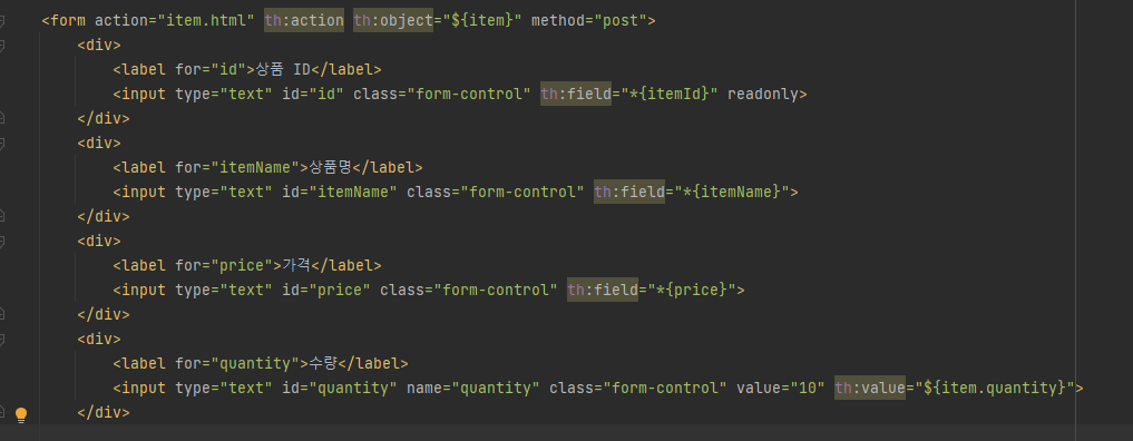 - id, name, value 모두 th:field 에서 지정한 변수의 이름이나 값을 사용한다.