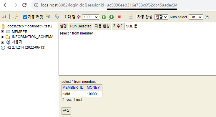 insert into member(member_id, money) values ('data1', 10000);