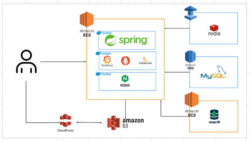 - 스프링 부트, Nginx, Grafana, Prometheus, Loki는 모두 도커로 컨테이너화 해 실행한다.
