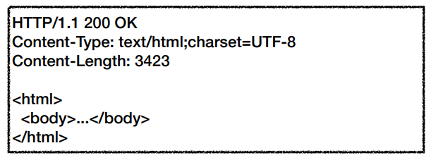 클라이언트가 이런 응답메시지를 받으면 웹 브라우저는 HTML 렌더링을 하여 HTML의 결과를 사용자에게 보여주게 되는 것이다.