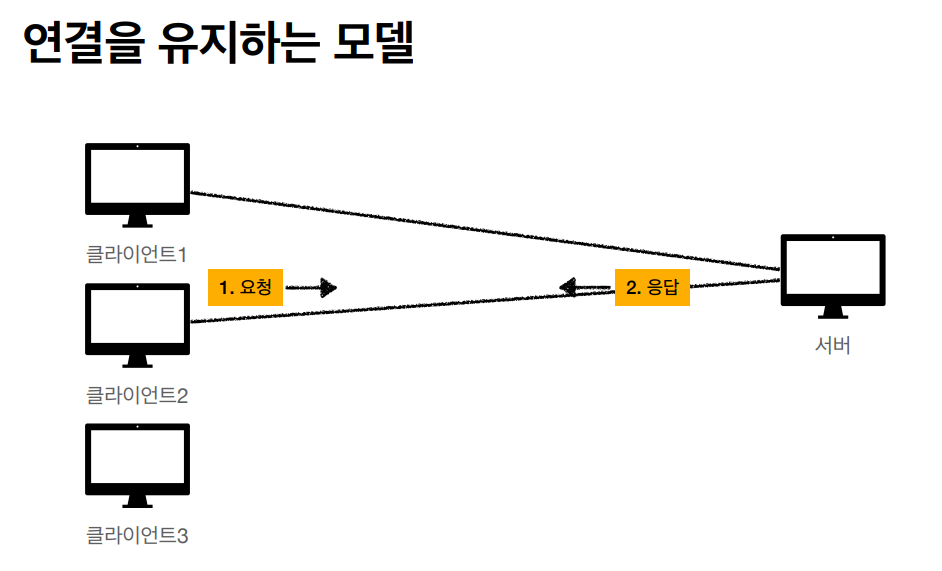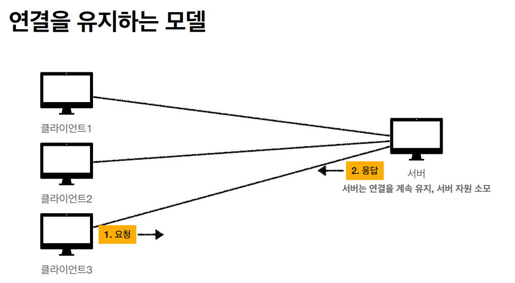이렇게 연결을 유지하는 모델은 서버의 자원이 낭비될 수 있다.