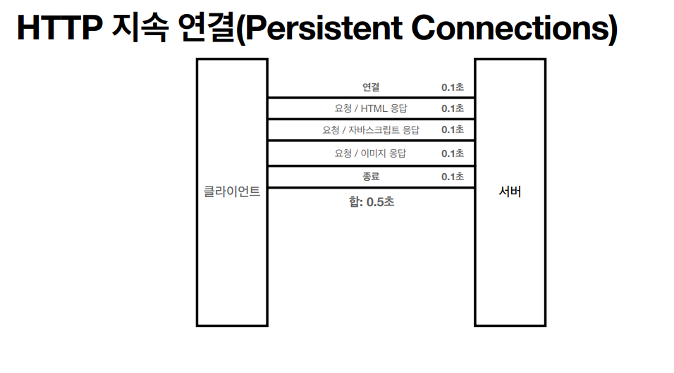 - 웹 브라우저로 사이트를 요청하면 HTML 뿐만 아니라 자바스크립트, css, 추가 이미지 등 수 많은 자원이 함께 다운로드 된다. 자원을 받을 때마다 연결하고 끊고 하는 것은 매우 비효율적이다.