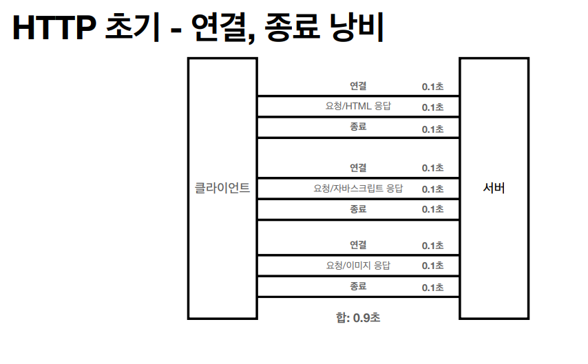 - TCP/IP 연결을 계속 새로 맺어야 한다. -> 3 way handshake 시간이 소모된다.