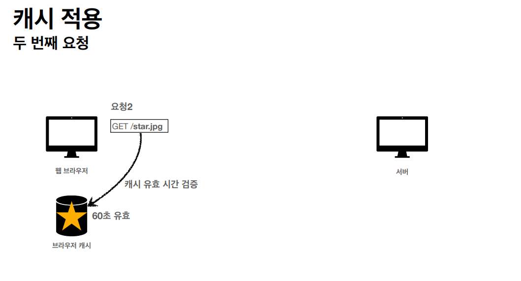 두 번째 요청에는 캐시의 유효 시간을 검증하고 유효하다면 캐시에서 바로 데이터를 가져올 수 있게 되는 것이다. 서버와 네트워크를 통해 통신할 필요가 없는 것이다.