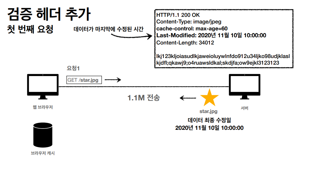 - 검증 헤더 : Last-Modified: 2020년 11월 10일 10:00:00 (응답)