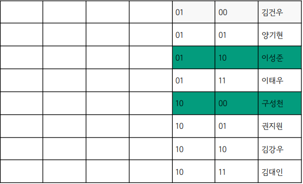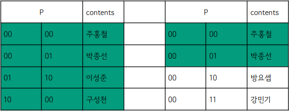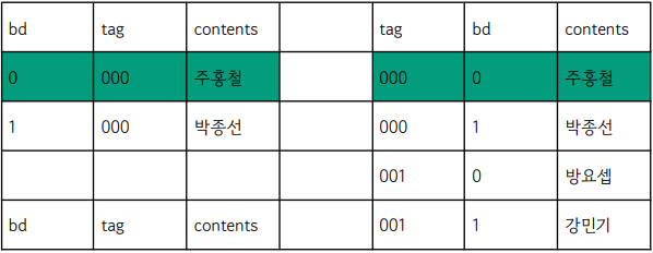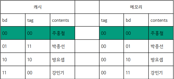 이렇게 구성되어 있다면 주홍철이 들어있는 캐시영역에는 bd가 같은 김건우와 구성천만 들어올 수 있는 것이다. (swap이 일어나는 것이다.)