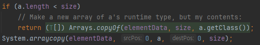 T[] result = (T[]) Arrays.copyOf(elemets, size, a.getClass());