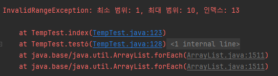 현재 IndexOutOfBoundsException은 String을 받도록 구현되어 있다.